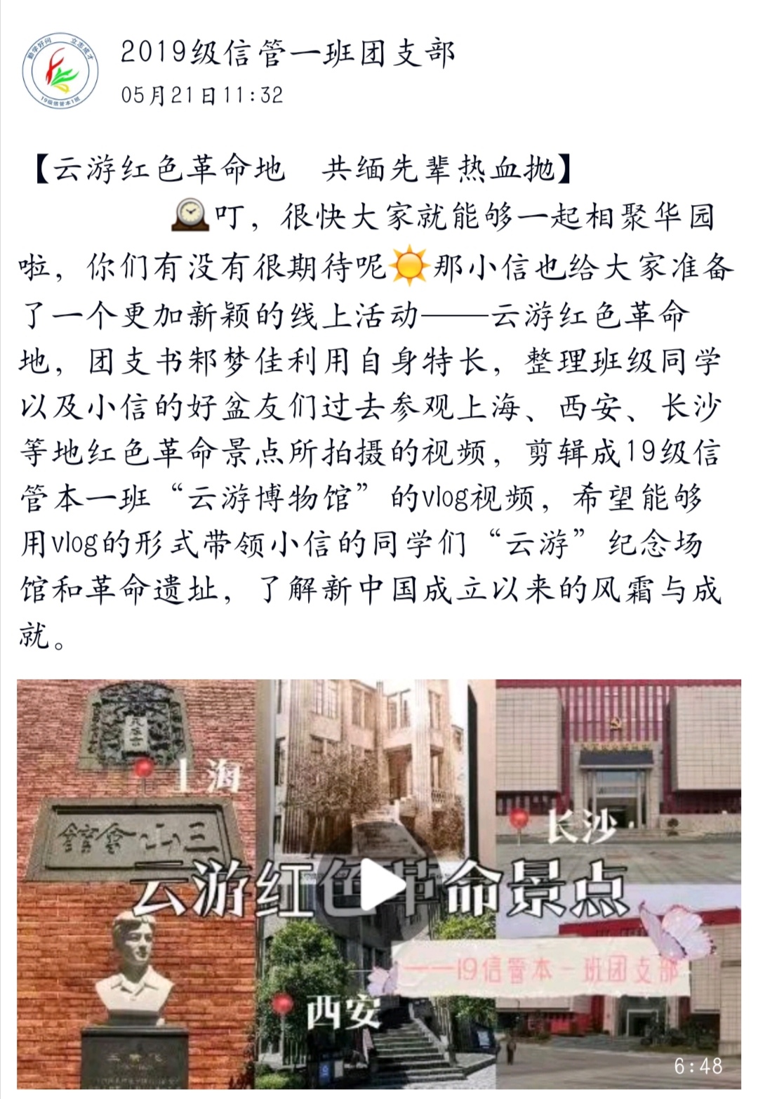 为进一步丰富广大青年团员的文化生活,提高青年团员的整体素质与人文素养。信息工程学院各级团支部以线上交流的形式,开展了“读书积累人生才智,书香浸润青春灵魂”青年线上读书交流会,以读书活动为载体,积极为广大青年团员们搭建读书交流的平台,营造青年学生爱读书、读好书、善读书的学习氛围,激发广大青年学生的学习热情与工作干劲;让青年团员们与书本为伴,与经典为友,与大师对话,陶冶情操,开拓视野。用读书传递信心,用知识做好防护,用精神凝聚青春力量。