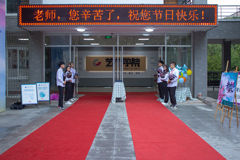 9月10日上午,艺术学院学生干部早早的就来到学院门口,精心为教师节进行了布置,同时为老师们逐个送上鲜花和节日的祝福,“老师、您辛苦了!”、“祝老师节日快乐!”、“谢谢您!老师!”一句句温暖的告白,让每位教师感受到学生浓浓的感恩之情。“同学们,我要变形了”、“快认真听课,老师放大招了!”师生间的互动合影,更是让这个教师节充满了乐趣和生机。