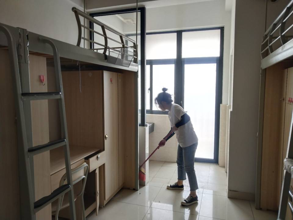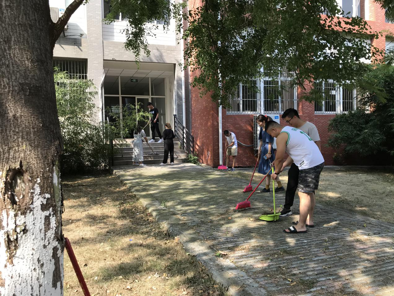 财会与金融学院2020级新生女生宿舍一共有123间,学生党员在校园保洁的基础上,逐一又对宿舍进行了一轮细致打扫,为新生们营造一种更加干净和温馨的宿舍环境。而负责教学楼的党员则重点清扫主楼周边树丛和小径,确保新生和家长入校后目及之处尽是整洁、脚踏之地皆无纸屑。虽然骄阳似火,但丝毫未减退党员们的服务热情;纵使汗流浃背,但党员们脸上始终洋溢着“赠人玫瑰,手有余香”的喜悦。