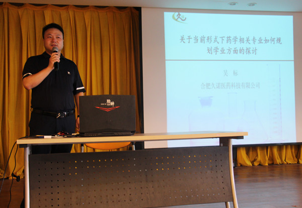 本网讯(通讯员:赵影 余明瑛)为加强药学院学风建设,让同学们了解企业需求与高校人才培养之间的联系与区别,提高同学们对专业的市场需求及专业前景的认知,提高专业技能锻炼的意识,充分调动学生学习的积极性。药学院于9月15日于下午14:00—15:00在学校小礼堂举办举办名企进校园——用人单位从企业需求角度解读药学专业大学学业规划问题的讲座。本次讲座的主讲人是beat365官网产学研副院长、合肥久诺医药科技有限公司总经理吴标。