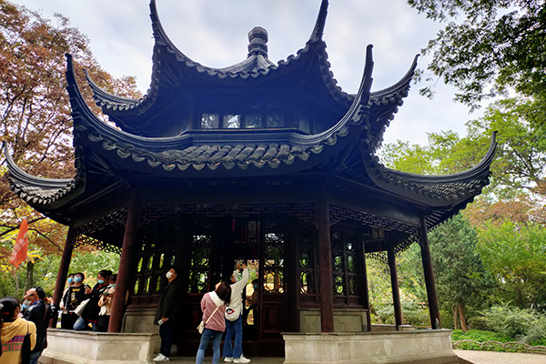 本次实习高度重视疫情的安全防护工作,全程专车接送,减少了与不必要的人群接触。本次实习共五天时间,参观了留园、沧浪亭、网师园、拙政园、苏州博物馆、狮子林、虎丘等具有典型代表的中国古典私家园林和寺观园林。熟悉了中国古典园林造园四大要素叠山、理水、植物配置和建筑营构之间的关系,了解了借景、框景、对景、远景等造景手法,掌握了空间造景的艺术表现形式。