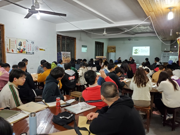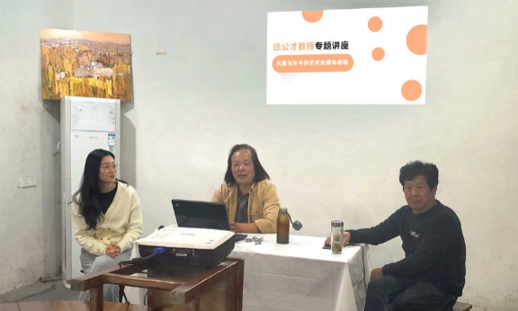 徐公才紧紧围绕 “风景写生中的艺术处理与表现” 主题进行分享,以自身艺术经历为开场,从传统风景绘画的要点与不足、景色的取舍、画面色彩关系的处理、写生及创作等四个方面同学们做了理论与实践相结合的阐述。讲座既为同学们介绍了色彩写生过程的相关知识,又指出了同学们在色彩写生过程中出现的一些问题与误区,并结合自己的艺术创作经历与同学们分享了色彩写生的经验。