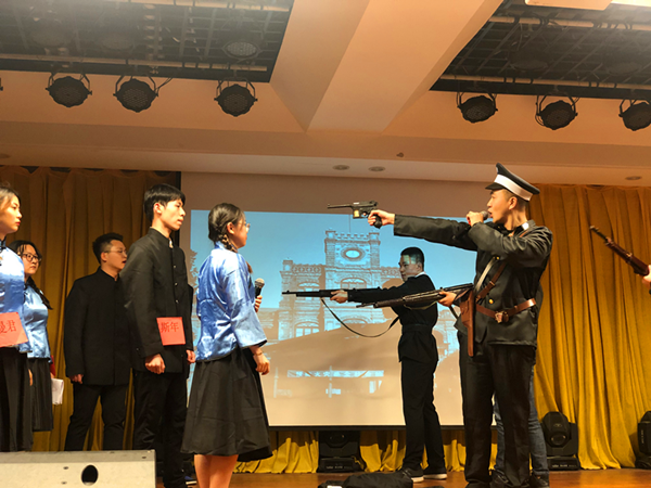 本次红色剧场共分为五个篇章,演员均为本次党的发展对象,共94名学生。他们历经26天紧张排练,发扬“红色剧场”自编自导自演的优良传统,以饱满的精神状态和高昂的演出热情为广大师生献上了一顿丰盛的精神大餐,现场掌声阵阵,呼声连连,广大师生在对历史人物、事件的缅怀中增强了爱党爱国爱校情怀。