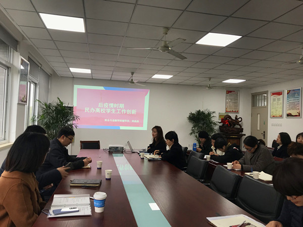 本次活动分为两部分。上午八点半全体成员在财会与金融学院会议室进行交流学习。首先由获全国民办高校辅导员优秀论文三等奖的胡晶晶老师向大家作名为《后疫情时期民办高校学生工作创新》的分享。她从民办高校学生工作难题、学生工作创新理念、学生辅导技术、辅导员专业发展路径等方面向大家介绍了第六届全国民办高校辅导员工作高峰论坛的相关热点话题以及其他民办高校优秀学工案例分享,并结合个人工作阐述了下一步班级特色管理工作思考。接着,由获得校学工论文一等奖的唐向峰老师作学工论文写作分享,她从研究模式与举例说明两个方面循序渐进地将学工论文的撰写过程作了详细介绍。