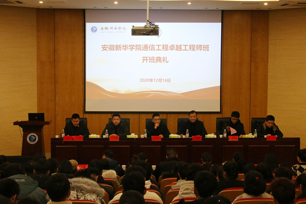 本网讯(通信员:陈璟)2020年12月16日下午,beat365官网举行通信工程卓越工程师开班典礼。校长助理、电子工程学院执行院长王琦进,中兴教育管理有限公司副总经理李保桥,华为安徽政企业务部副总经理李华强,深圳市讯方技术股份有限公司 安徽区域总监马劲松,联通(安徽)产业互联网研究院工业互联网行业总监武涛,电子工程学院副院长汪青、罗振林,中兴教育管理有限公司区域总经理姚磊,中兴教育管理有限公司安徽区域校区运营总监王干,电子工程学院通信系全体教师、2020级通信工程专业学生参加了此次开班典礼。