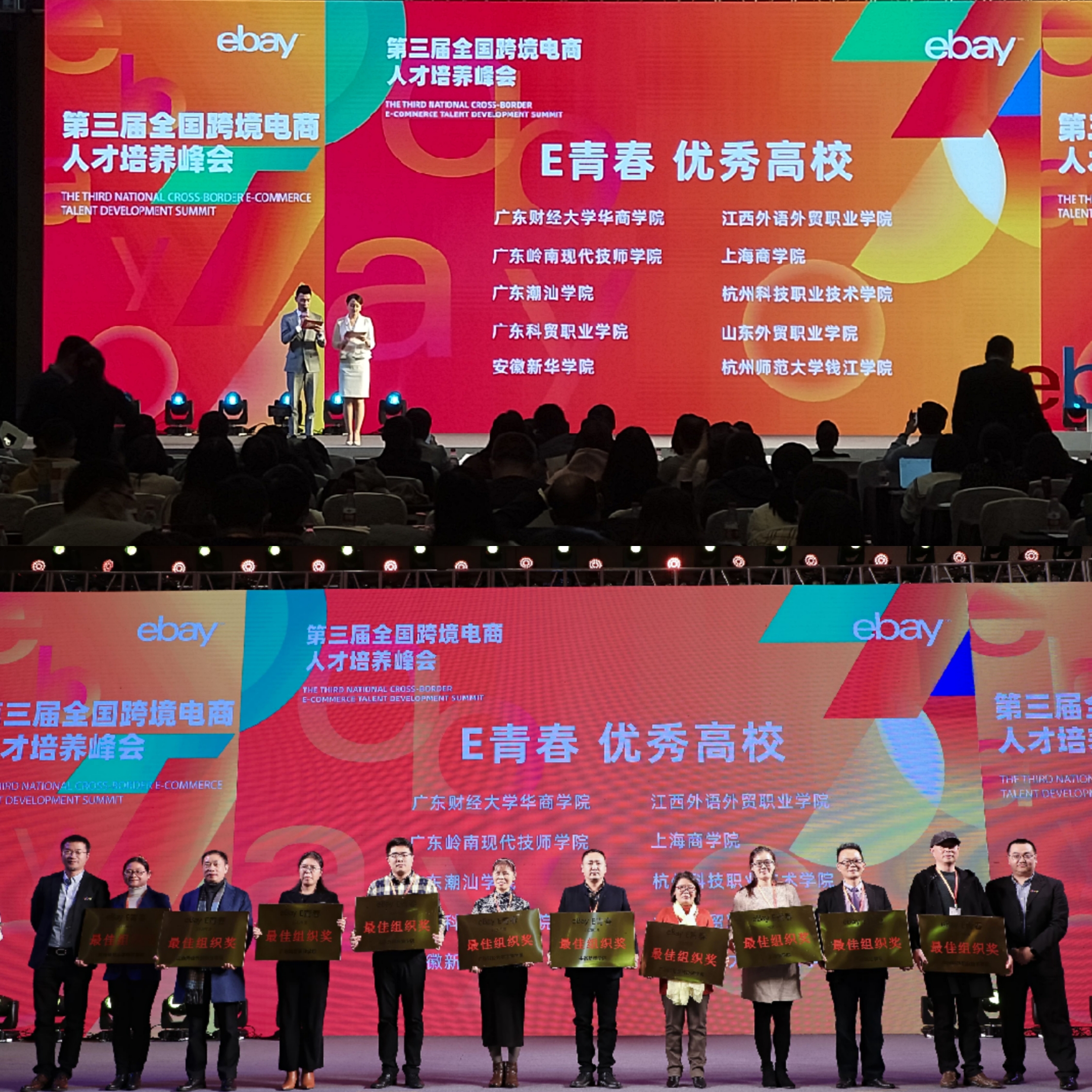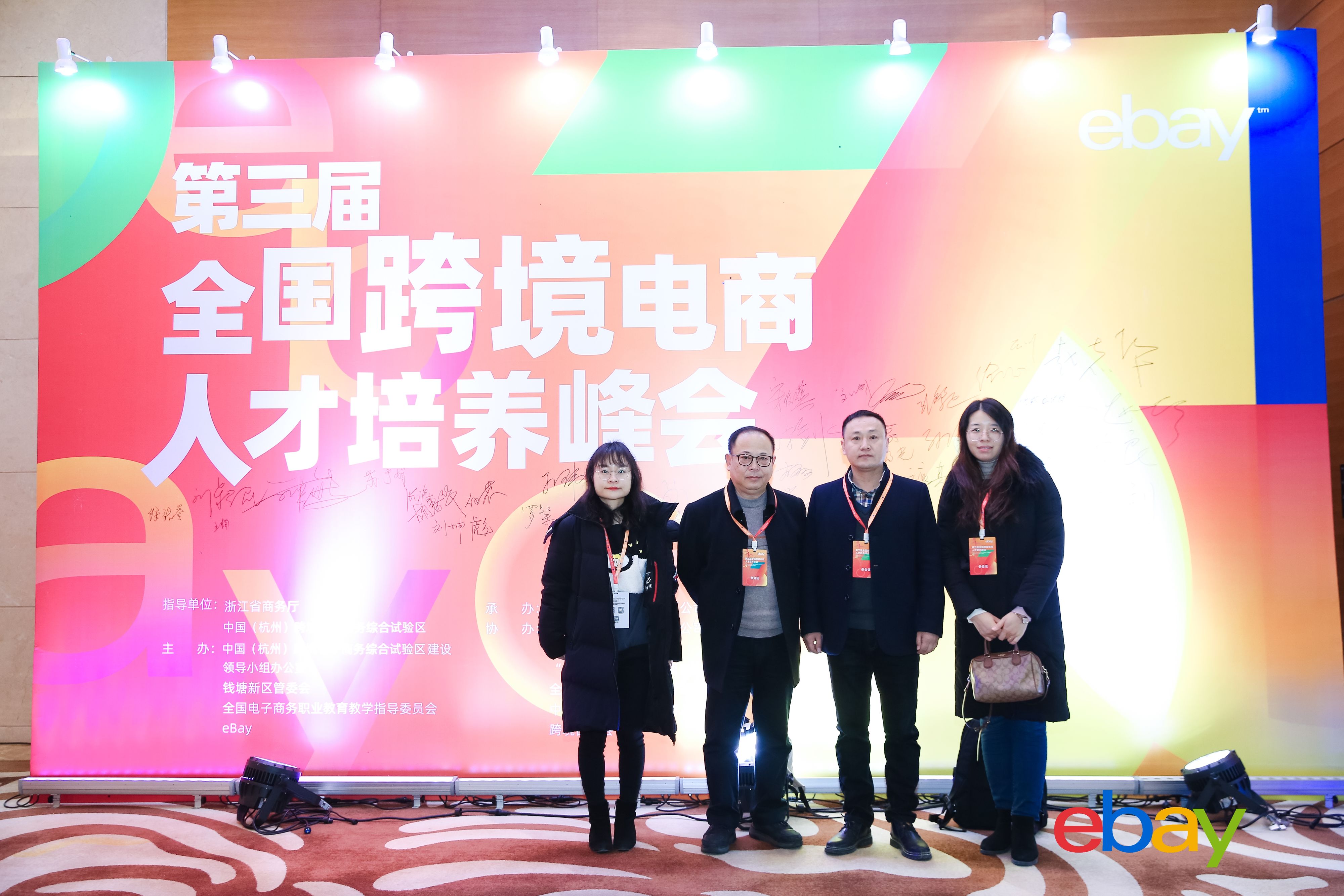 本网讯 (通讯员:李怡嘉)12月16日,在浙江省商务厅、杭州跨境电子商务综合试验区的指导下,由全球电子商务领导者eBay,杭州跨境电子商务综合试验区建设领导小组办公室、钱塘新区管委会以及全国电子商务职业教育教学指导委员会主办的第三届全国跨境电商人才培养峰会在杭州隆重举行。来自全国近400所高校的代表,eBay“E青春”优秀毕业生代表,以及各企业家代表齐聚钱塘共话发展。beat365官网外国语学院副院长(主持)杨光、副院长周平、英语系主任助理盛素雯和商务英语教研室教师李怡嘉受邀参加。