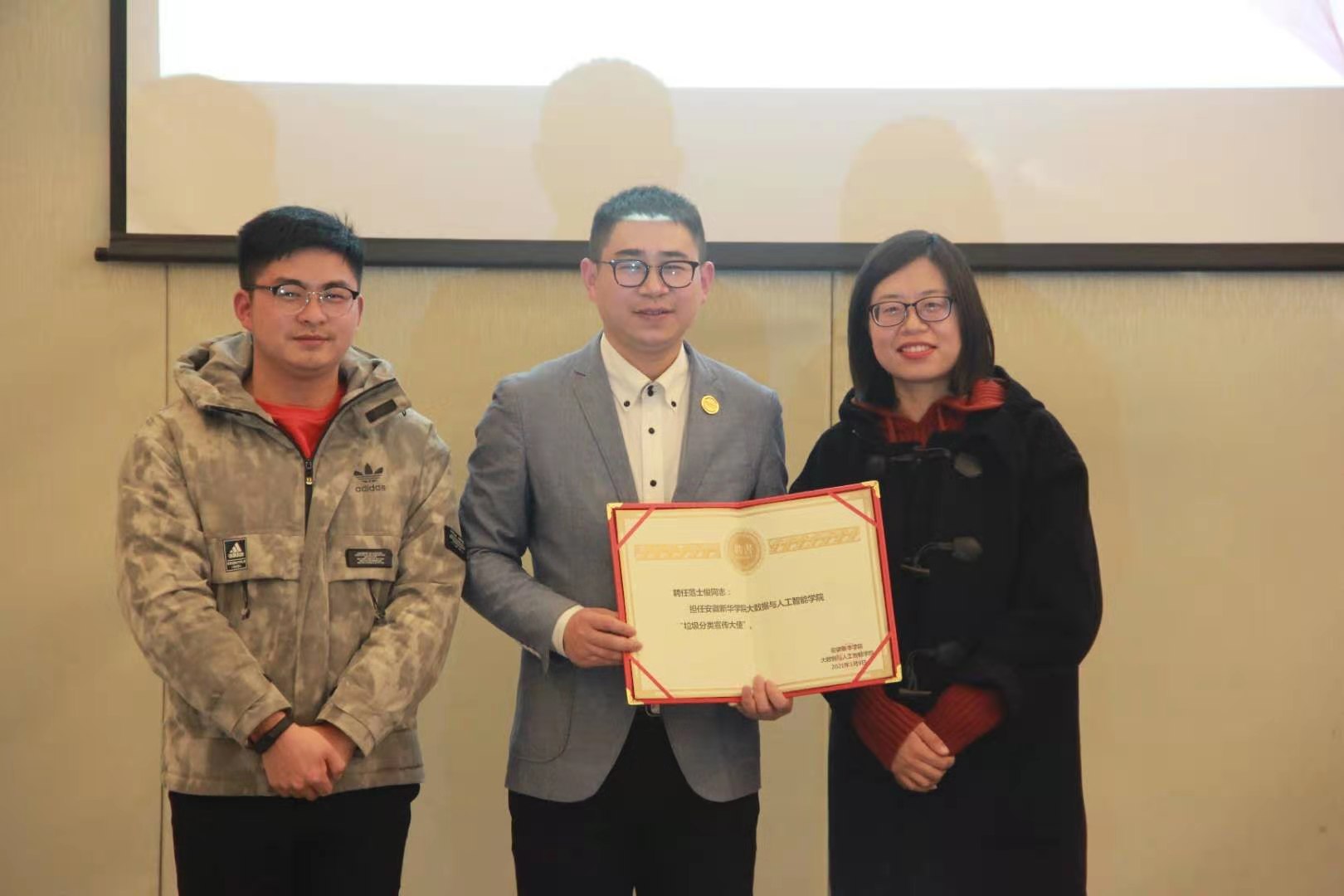本次理事会涉及多项议题,包括如何通过垃圾分类前端设计体现人情味,建立社区与人心的连接,如何把垃圾分类嵌入社区营造,植入可持续生活等。会议最后,合肥绿迹环保垃圾分类发展中心为许滢、洪婉玉等四名年度优秀志愿者颁发荣誉证书,魏高莉代表大数据学院为范士俊及王清宇分别颁发beat365在线唯一官网登录大数据与人工智能学院垃圾分类宣传大使、志愿服务指导老师聘书。