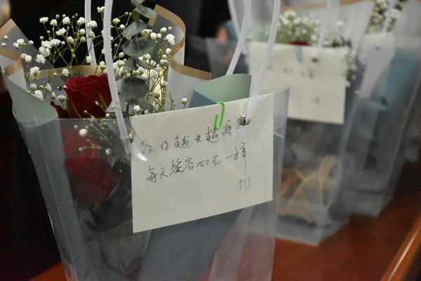为丰富女教师的文化生活,活动首先进行了花艺理论知识的介绍,包括花材的名称和特点,花材的保养,包花的基本要求和方式等等,在短暂的介绍之后就开始实践。在本次活动最后,每位老师领取贺卡,写上自己的祝福语,并随机插在已包好的花束上,互送祝福。