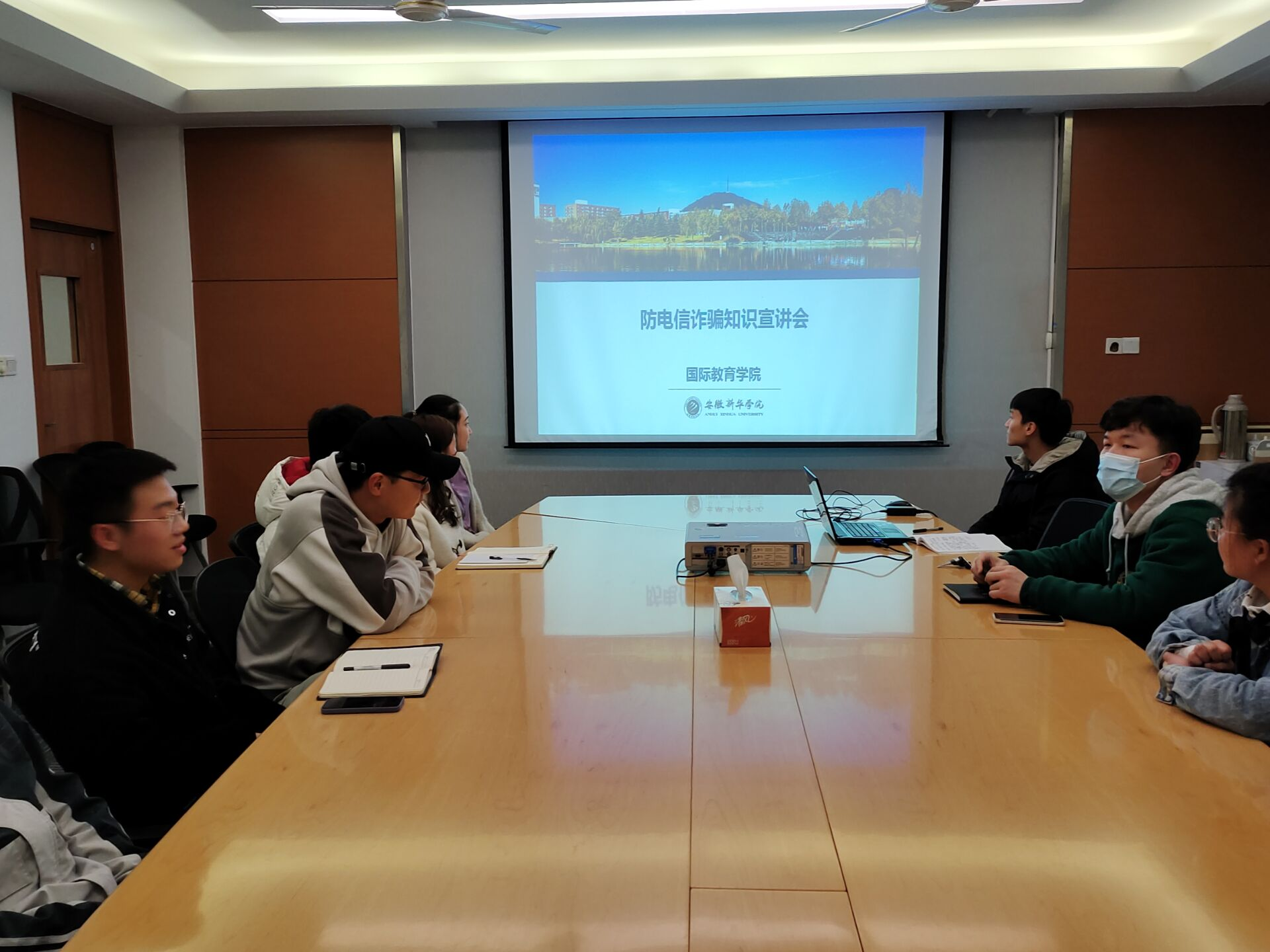 国际教育学院各班级组织召开安全教育主题班会,切实提高学生的防范意识。建立信息员,配合辅导员开展排查工作。坚决做到防电信网络诈骗“十个凡是、六个不”。