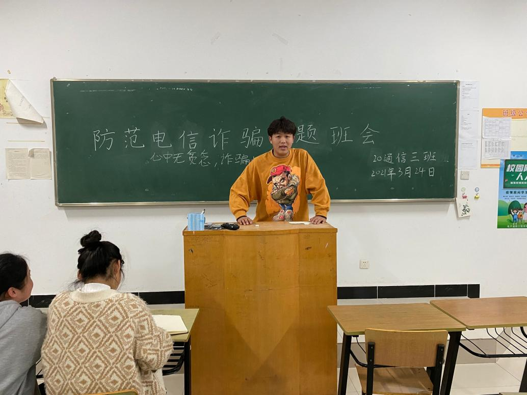 此次“防电诈”主题团日活动期间,团支书采用了ppt、视频、纸质宣传材料结合的方式,让同学们观看了预防网络诈骗、保护人身与财产安全宣传片,并向同学们详细的介绍了关于电信网络诈骗的知识、各种骗子诈骗的手段,宣讲“预防网络诈骗”的目的、意义。向大家强调了保护人身财产安全、预防网络诈骗的重要性,普及了预防网络诈骗的相关方法。部分同学也分享了过往自己受骗的经历和身边人受骗的故事,帮助同学们充分了解被诈骗后的危害和影响,自觉提高防诈骗的意识,了解目前社会上存在的各类诈骗手段和方法。