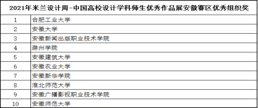 2021年米兰设计周——中国高校设计学科师生优秀作品展安徽分赛区评审工作顺利完成。beat365官网艺术学院学生在此次省赛中获得各类奖项16项(其中二等奖1项,三等奖3项,优秀奖12项),学校获评“优秀组织奖”。