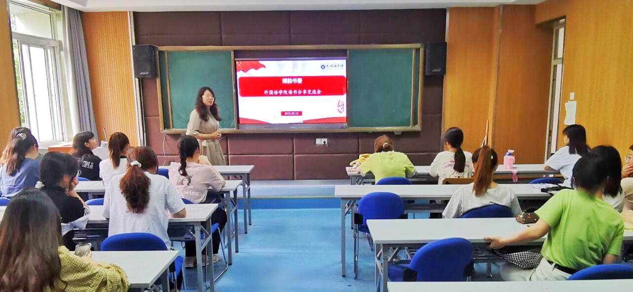 读书交流活动是一个自我充实、自我提高专业技能、培养良好读书习惯、提高自我修养的活动。外国语学院“博韵书香”读书分享交流会为师生搭建良好的学术交流和专业共享平台,有助于促进师生知识结构、文化素养、学术能力等综合能力的提高与发展,对推动跨文化融合与创新有积极意义,同时也为培养具有国际化视野和爱国情怀的教师与学生奠定良好的基础。