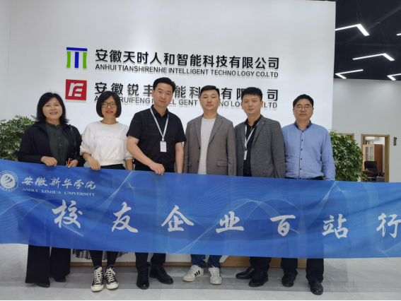 本网讯(通讯员:陈红)为加强大数据与人工智能学院毕业生和用人单位间的联系与沟通,了解毕业生和用人单位对大数据与人工智能学院工作的意见和建议,掌握人才培养与社会需要的符合度,提高该院就业工作的水平和质量,5月26日,大数据与人工智能学院执行院长吕翔、副院长万家华、院长助理魏高莉及辅导员代表陈红赴优秀校友2011届计算机网络毕业生高刚、郭磊自创企业安徽天时人和智能科技有限公司、安徽瑞丰智能科技有限公司开展“温情相聚 E起精彩”校友回访活动。