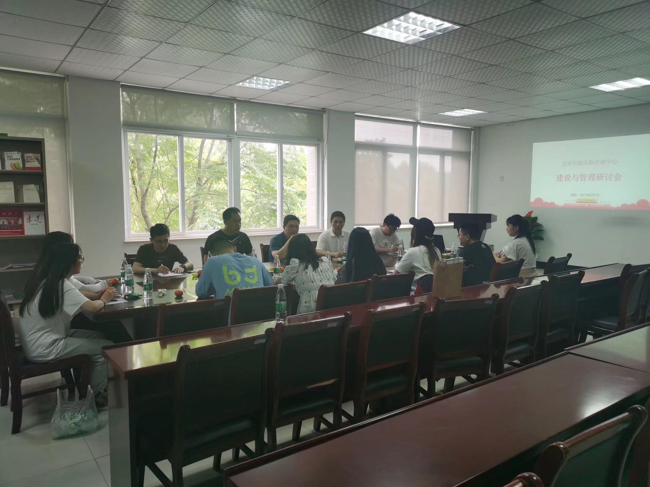 本网讯(通讯员:余新泳)为进一步推进艺术学院实验实训中心实现科学规划,促进中心管理工作有序开展,提升其在学院学科专业发展和教科研工作中的支撑力,6月1日,艺术学院在会议室召开实验实训中心建设与管理工作第二次专题研讨会。会议由实验实训主管余新泳主持,执行院长许存福、系主任代表王晓俊、教师代表崔学勇、蒋心一、辅导员代表张大勇以及部分助理代表参会。