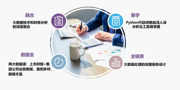 本课程是会计专业和财务管理专业的核心课程,依据产业数字化人才能力要求和院校对大数据+财务复合型人才培养的需求,打造的大数据技术、财务分析和决策相融合的课程。学生使用大数据技术对企业经营进行分析、洞察与预测,训练学生数据采集、数据清洗、数据挖掘、大数据分析与辅助经营决策的能力,培养学生的技术素养与专业素养。