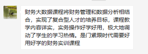 2019级财务管理(用友卓越班)1班张维悦表示:“通过对大数据可视化这门课程的学习,我深刻认识到将财务数据转换为可视化图表的重要性,身为财务专业的学生、工作者,如何让枯燥的财务信息变得更直观、更易于理解、更快速的传递关键信息无疑是一大难点,在了解学习DBE财务大数据平台后,利用可视化面板的图标,新建并计算度量值等方法就可以轻松的生成可视化图表。”
