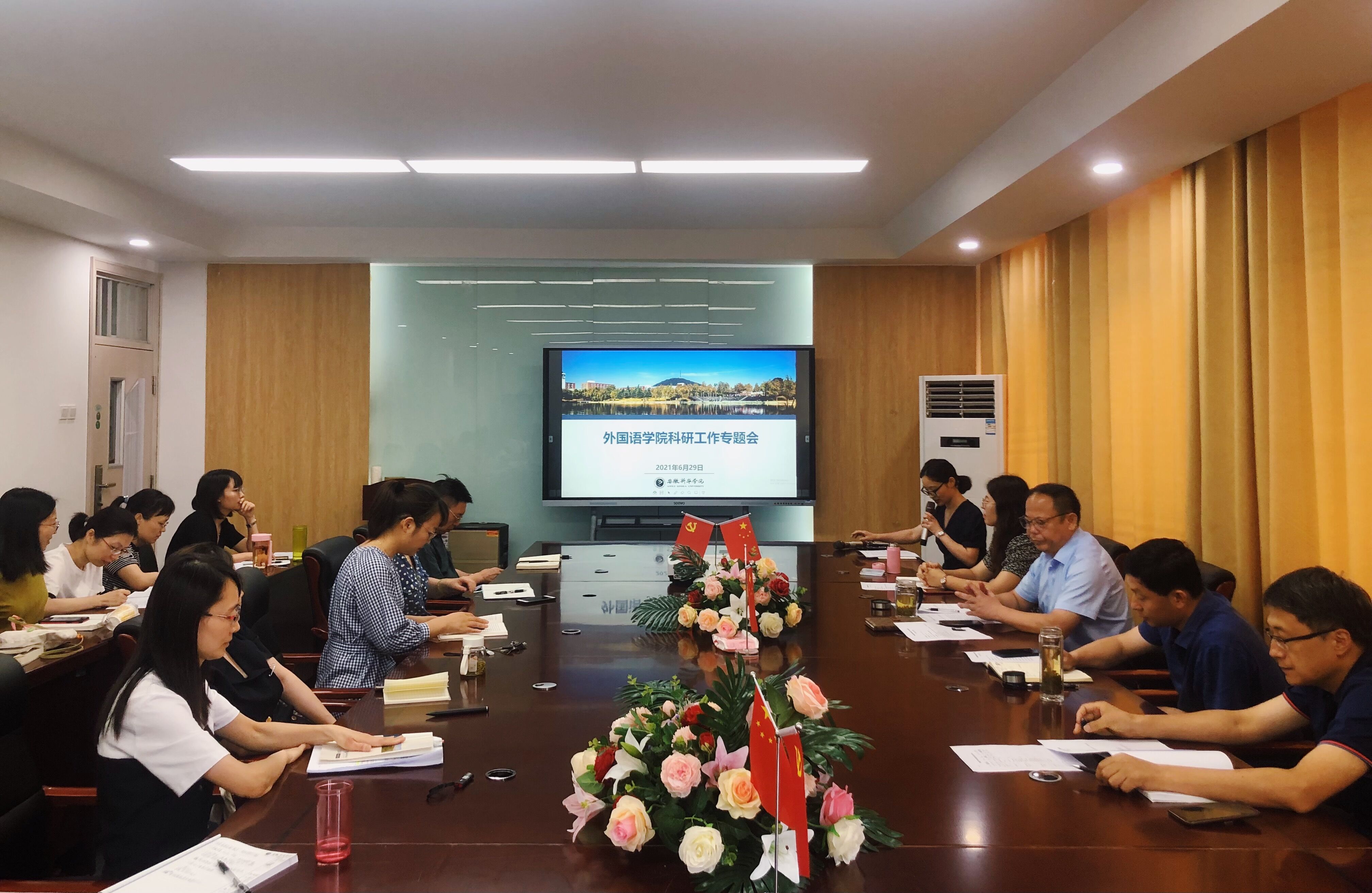 本网讯(通讯员:孙礼彤,李怡嘉)为进一步做好科研工作总结和全面推进工作,凝练学院的科研特色,6月29日上午,外国语学院在324会议室组织召开科研工作专题会。外国语学院执行院长杨磊、学科带头人周平,副院长王志宏及学院全体教师参加会议,会议由周平主持。