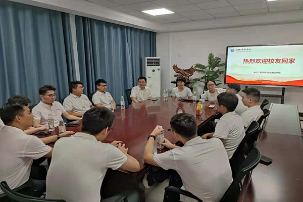 校友代表参加完学校合肥校友分会成立大会后,电子工程学院/智能制造学院副院长罗振林、辅导员老师邀请校友回到曾经上课的教学楼、教室参观并进行座谈交流。座谈会上,校友们回忆了曾经在母校生活、学习的情景,并表达走向工作岗位后,对母校的感恩。同时罗振林向校友们介绍近年来学校、学院发展过程中在专业建设、学科竞赛、人才培养等方面取得的优异成绩,并希望校友们能时长关心母校的发展,加强与母校的联系。