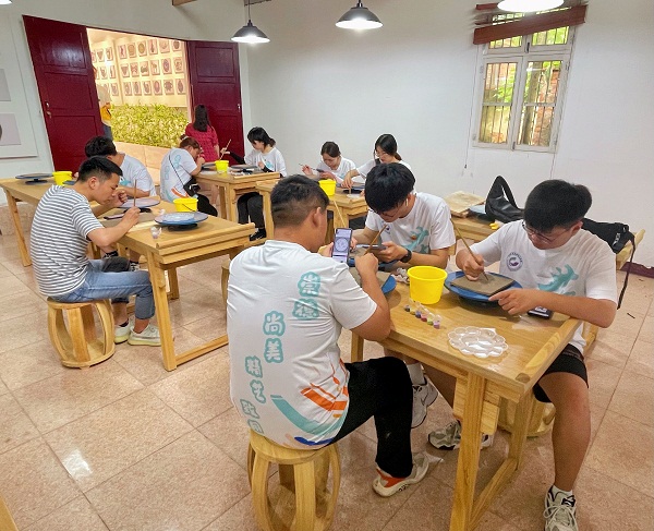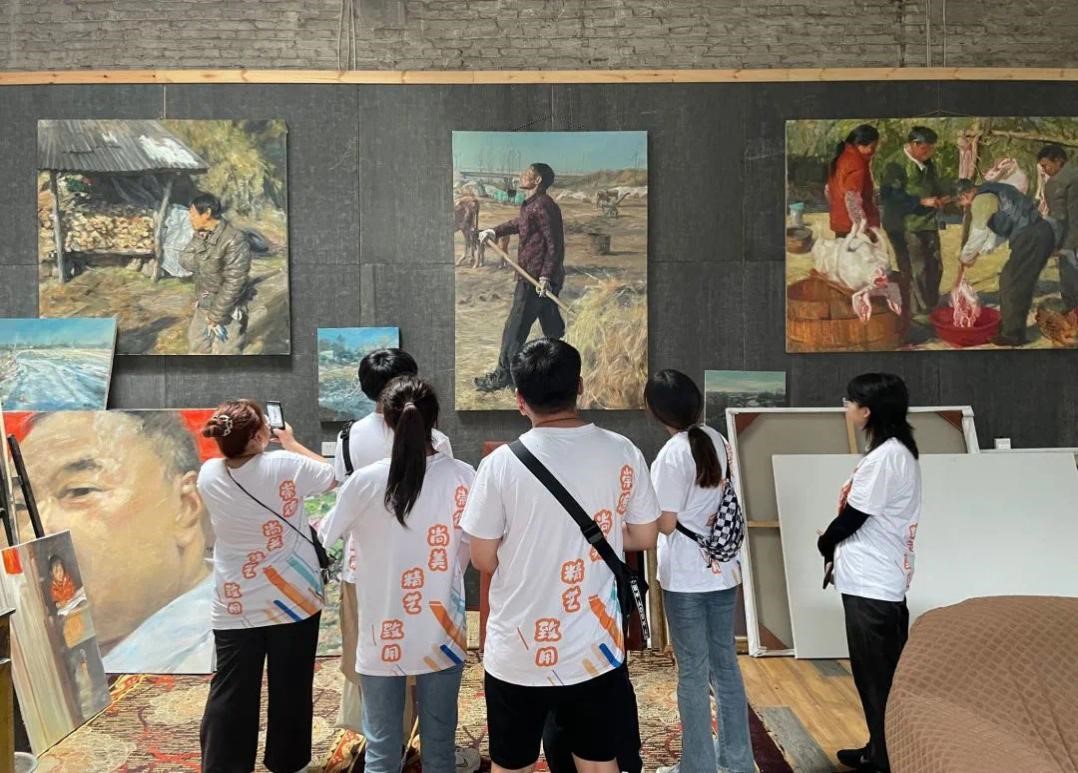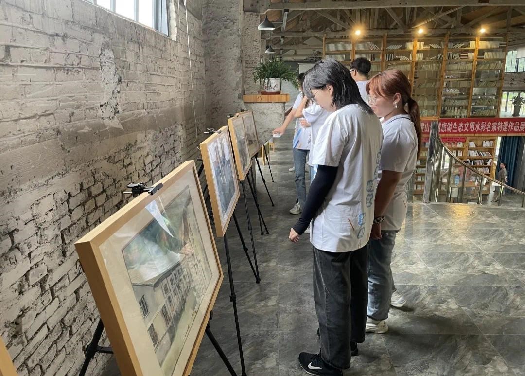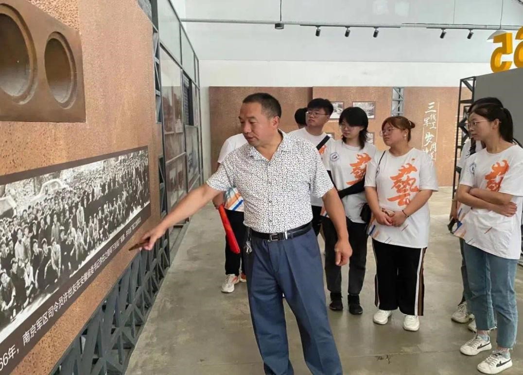 在参观中国·月亮湾作家村当地村史馆、图书馆和艺术家们的工作室时,师生们发现这里利用了东西溪乡境内原淮海机械厂部分存量厂房,在保留原本的建筑风貌上,将它与现代化艺术风格相结合,赋予了别样的风采,也给广大同学们未来专业道路提供了一定的启发与思考。