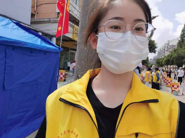 在服务期间,程嘉瑞嗓子哑了,腿站麻了,衣服汗湿了,她也没有说过休息,只要有群众来做核酸检测,她就暗自给自己加油鼓劲,打起精神继续干。从凌晨坚持到深夜,再从深夜奋战到凌晨,程嘉瑞用行动展现了青年学子的勇敢与担当。同时,她也表示,在做志愿者期间,有幸与广大党员同志并肩作战,深刻认识到了党员的先锋模范作用和基层党组织的战斗堡垒作用。