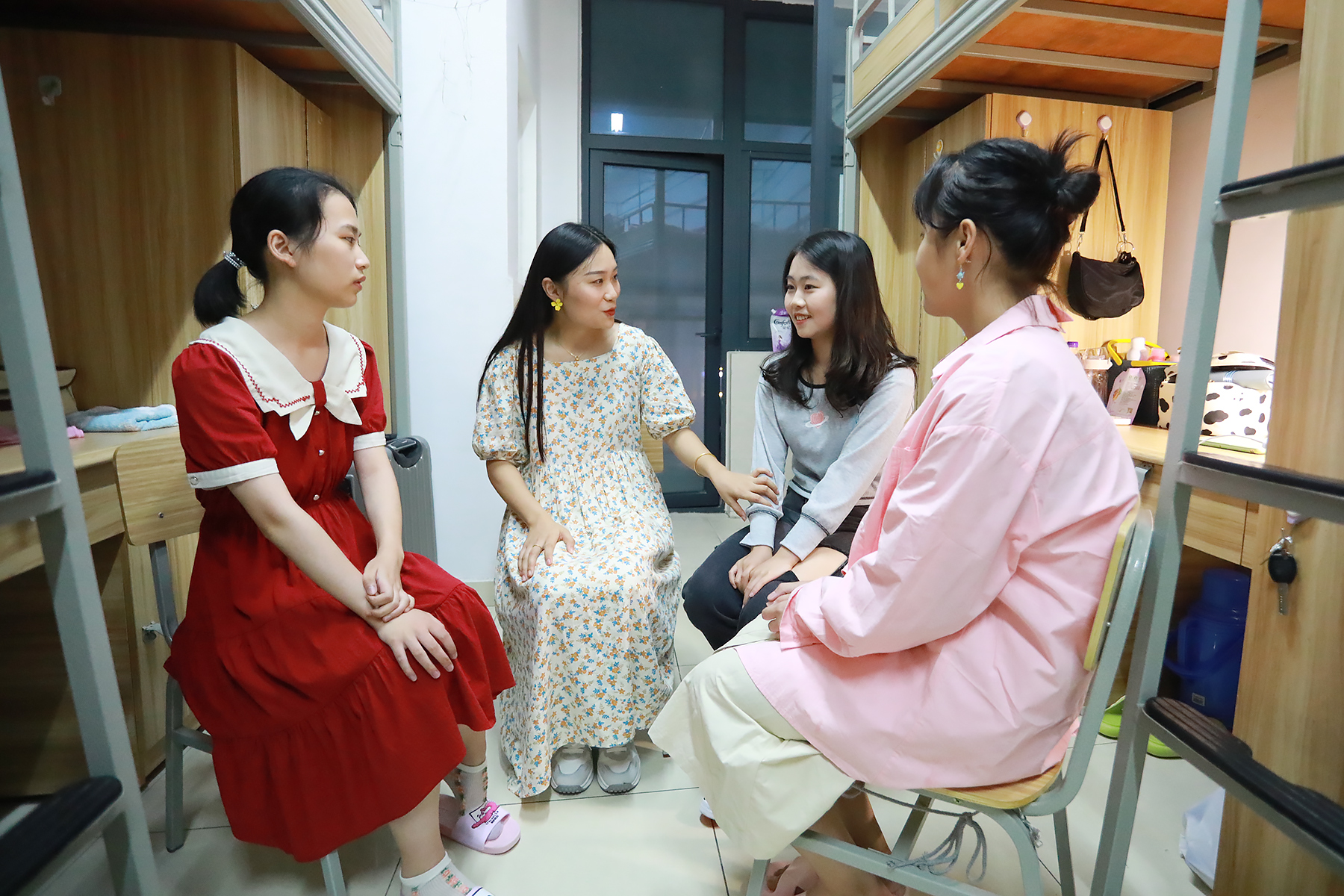 天色渐晚,宿舍楼的灯一盏盏亮了起来。整理床铺、收拾桌面、和舍友分享家乡美食……宿舍楼的每一扇窗户都在拉开故事的序幕。“宿舍很整洁,还认识了特别好的小伙伴,老师也来看望我们,我觉得新华园的一切都很好!”新生李梅说道。