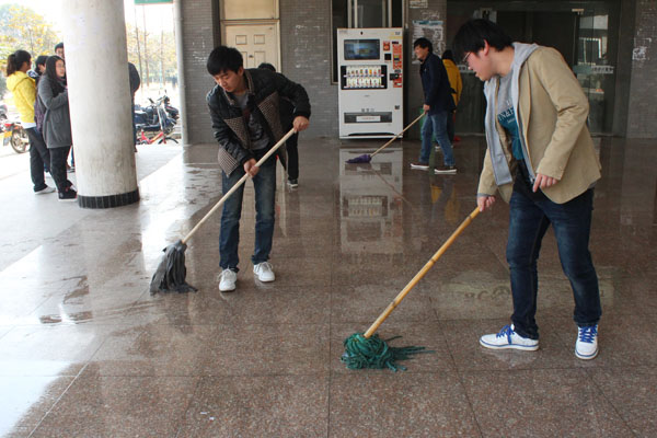 活动中,学生会全体成员展开了一系列改善该院教学楼环境行动,清除垃圾广告、清理教学楼垃圾,清扫教学楼地面等。经过全体成员的共同努力,文化与新闻传播学院教学楼面貌焕然一新,墙面的“牛皮癣”不见了踪影,学院整体环境也变得整洁、清爽。