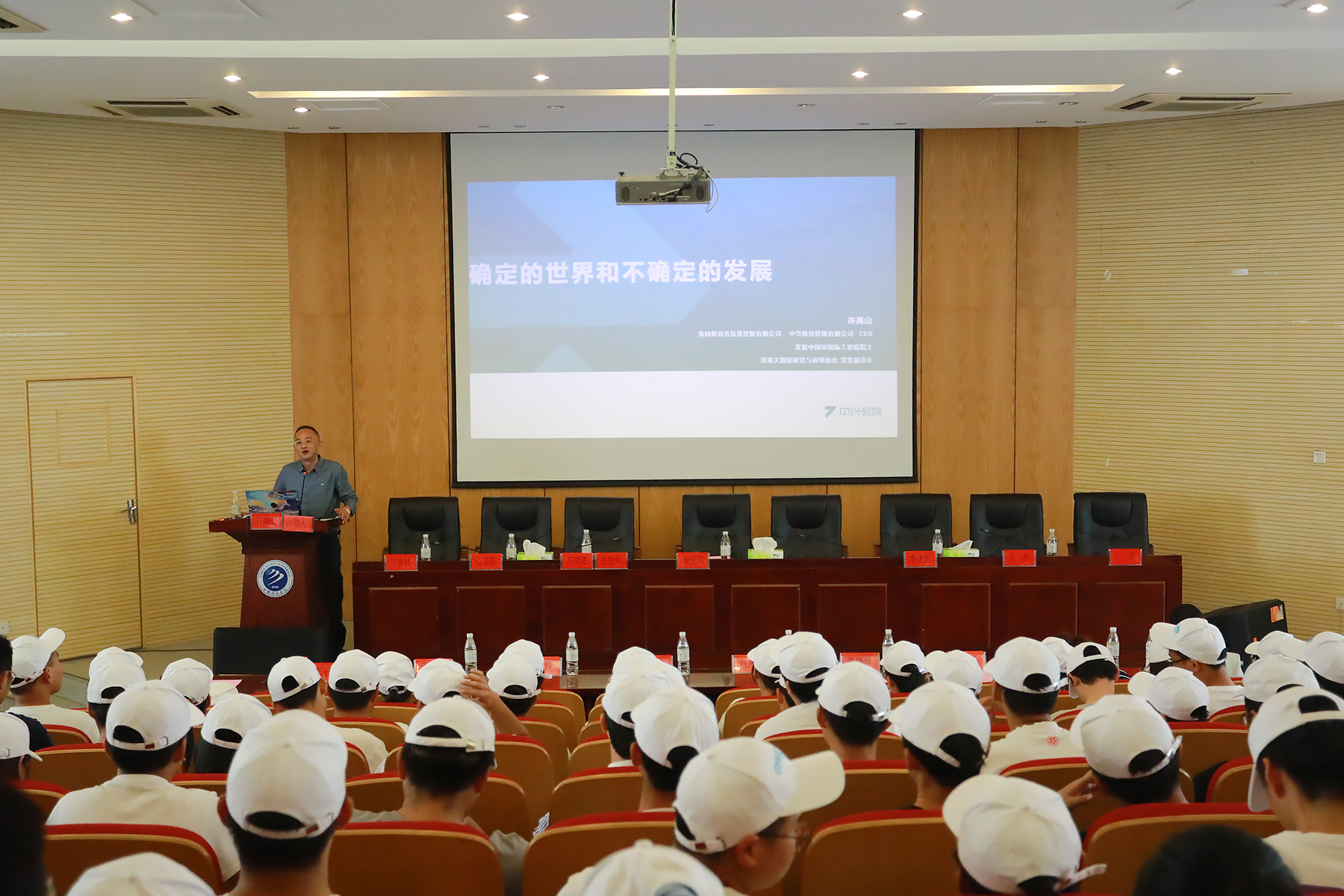 第二阶段为开班导读讲座。许高山给学生开展了题为《确定的世界和不确定的发展》的讲座。他从5G标准核心专利分布简介、中国为什么要全力发展5G以及ICT现代产业学院的培养特色这几个方面,深入浅出地向学生们介绍了ICT技术在全球产业及经济发展中的重要作用,希望大家能在ICT现代产业学院的学习过程中,得到阶梯式教学+专业技能与职业素养双提升,在将来的职业生涯中,以全面的综合能力,去适应各种可能。