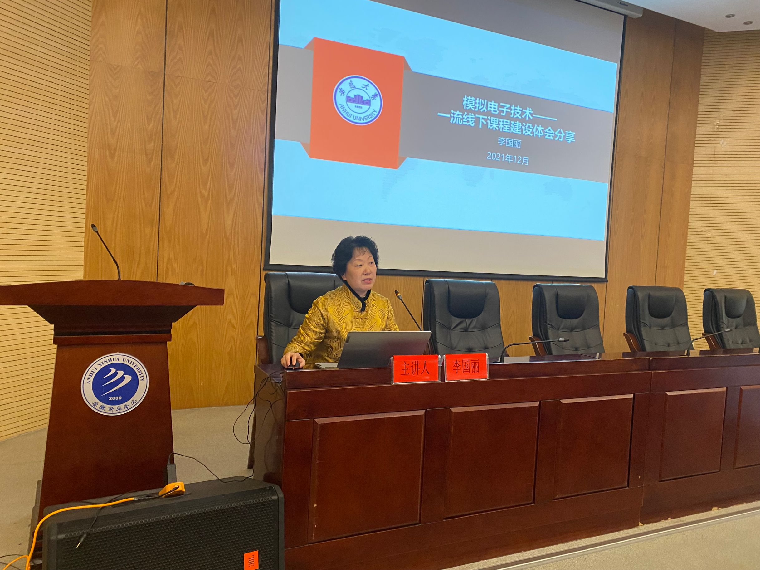 李国丽教授作了题为《模拟电子技术---一流线下课程建设体会分享》的讲座。李国丽从评审指标点出发,与在座人员详细解读了一流课程评审的关键点,并以安徽大学为例,分享了“模拟电子技术”这门一流线下课程的建设体会。牢固树立“三个不合格”理念,竖起“高压线”,同时要推动课程思政建设,构建全员全程全方位的育人大格局。