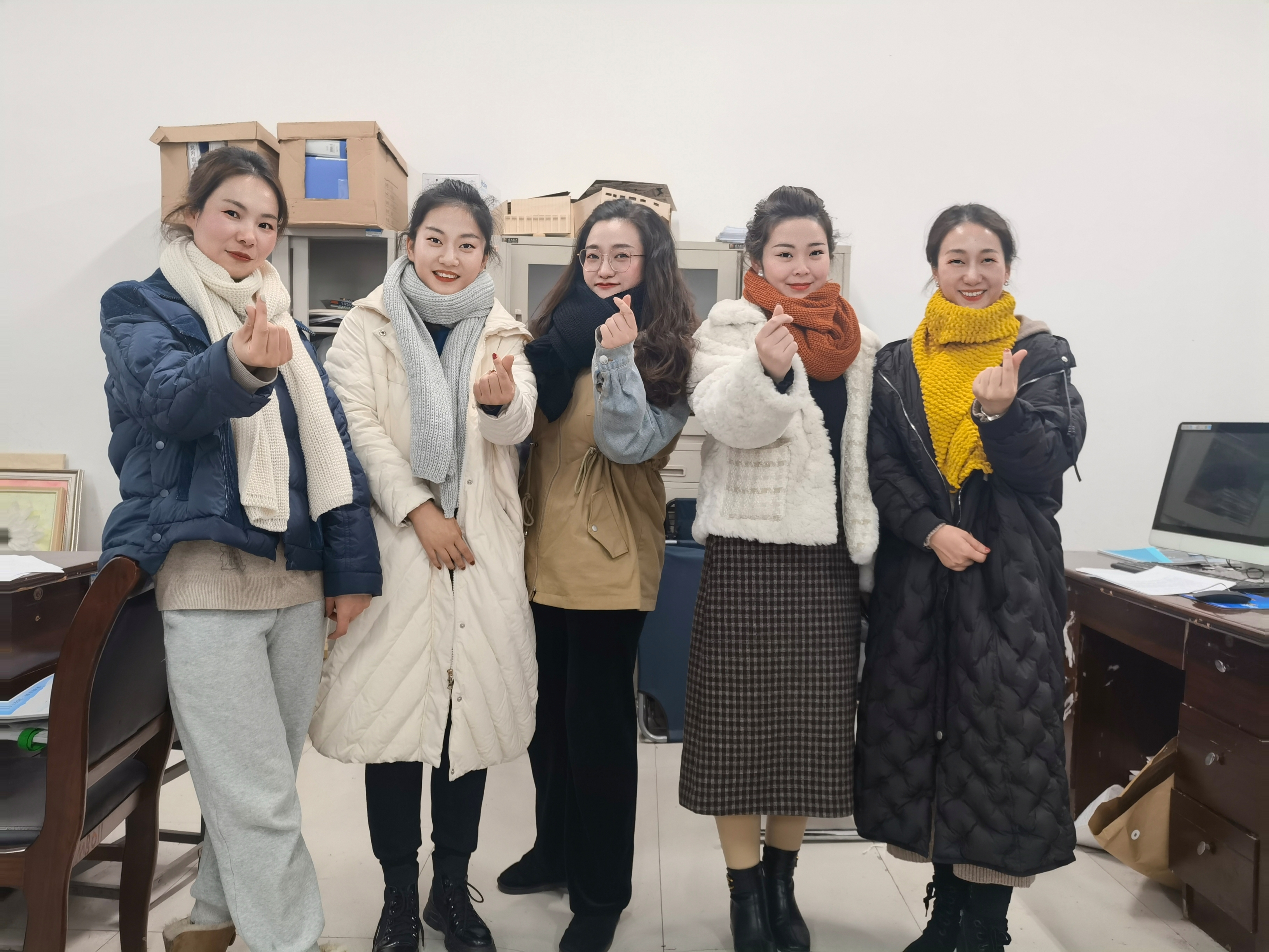 通过大半个月的学习和制作,同学们编织了40多条围巾,每一条围巾都装满了党员同学们暖暖的爱心。元旦节前一天艺术学院的老师们都收到了同学们赠送的暖心的新年礼物,在艺术学院打扫楼道的保洁阿姨也收到了同学们赠送的围巾。