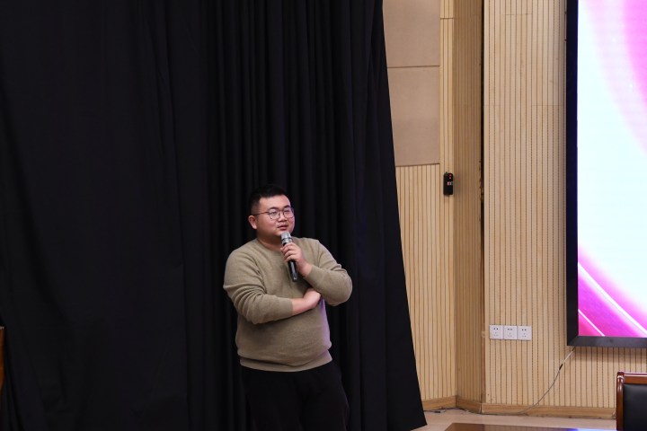 首先,范依军对凤凰网安徽七年的发展历程进行描述,并详细的介绍了实习岗位需求、企业文化、发展概况及未来前景等方面情况,同时,讲解MCN、SVG等新兴名词,让学生们更好的了解新媒体行业的就业市场、就业趋势和人才缺口,提高学生们的求职热情和信心。