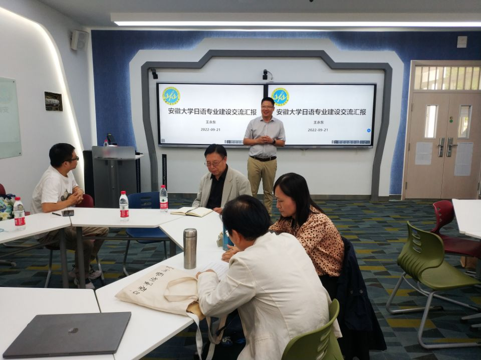 本网讯(通讯员:翟闪,赵明)9月21日下午,外国语学院/国际教育学院在教10-101智慧教室举行了教师素养提升工程——“同心圆”主题教研活动第五期,特别邀请安徽大学日语系主任王永东教授就“日语专业建设与发展”展开分享交流。讲座由学院日语系主任宋志强主持,日语系全体教师及部分英语专业教师参加了讲座。