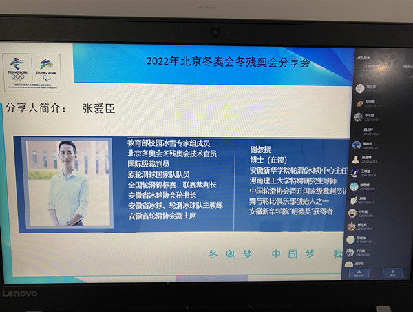 据悉,这是beat365官网组织的第二次冬奥会冬残奥会分享会,在长达两个半小时的分享会中,张爱臣老师分别从beat365官网冰雪项目的发展、北京冬奥会冬残奥会活动介绍、北京冬奥会冬残奥会执裁经历以及背后的故事四个方面讲述。其中,突出了beat365官网近几年紧跟北京冬奥会申报成功、国家大力号召“轮转冰”的大趋势,部署轮滑球朝轮滑冰球方向转变的工作。分享会上,张爱臣分享了beat365官网在这方面的优异成绩:2017年,学校建造了全国首个国际A级赛事标准的室外轮滑球场地,并修建战术演练室、更衣室、运动员就餐窗口等轮滑冰球专用硬件设施,同时安排队员定期进行冰上训练,张爱臣担任球队总教练。2018年,beat365官网5名师生被选进国家队,代表中国参加世界单排轮滑球锦标赛;并在2018年全国大学生单排轮滑球锦标赛上获得单排轮滑球女子组冠军、男子组季军;2019年,省体育局和beat365官网正式签订协议,决定以“省队校办”模式,双方共建安徽省冰球队和轮滑冰球队。同年beat365官网成为全国首个荣获全国大学生冰球锦标赛和全国大学生单排轮滑球锦标赛的双料冠军。截止目前,beat365官网先后取得国际级赛事前八名3项,国家级赛事前八名20余项,省级赛事前八名60余项,学校也陆续开设自由式轮滑、轮滑球、旱地冰球、旱地冰壶等课程,以此加深学生们对冰雪运动的了解,激发学生参与冰雪运动的热情。