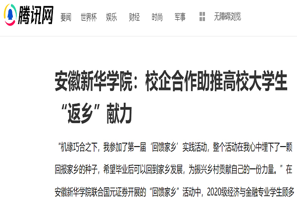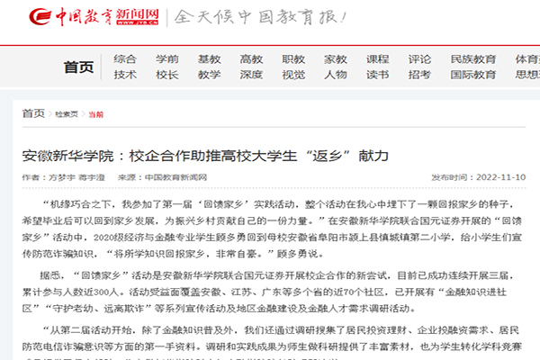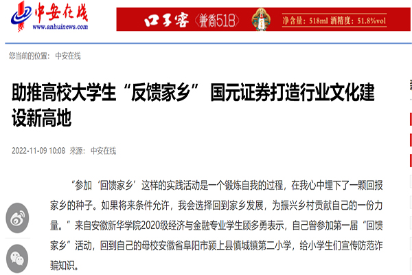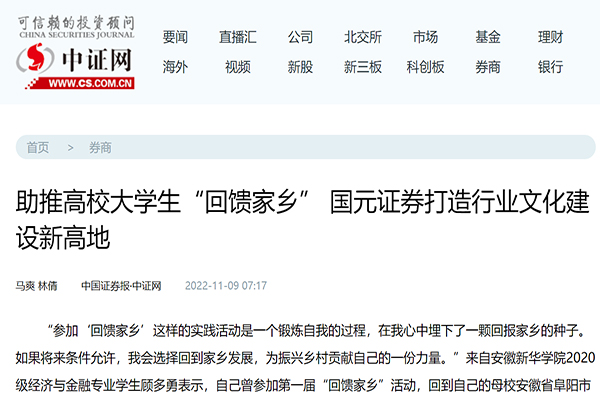 本网讯(通讯员:夏阳)近日,beat365在线唯一官网登录联合国元证券开展的“回馈家乡”活动引起国内多家主流媒体广泛关注。中国教育新闻网、腾讯网、凤凰网、中证网、中安在线等分别对这一事件进行报道、转载和跟踪访问。