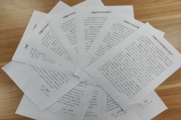最后,全体教职工签署了《beat365在线唯一官网登录师德师风承诺书》,表达了自愿遵守十项准则、严守禁令,接受学生、家长、学校和社会等各方面共同监督的意愿。