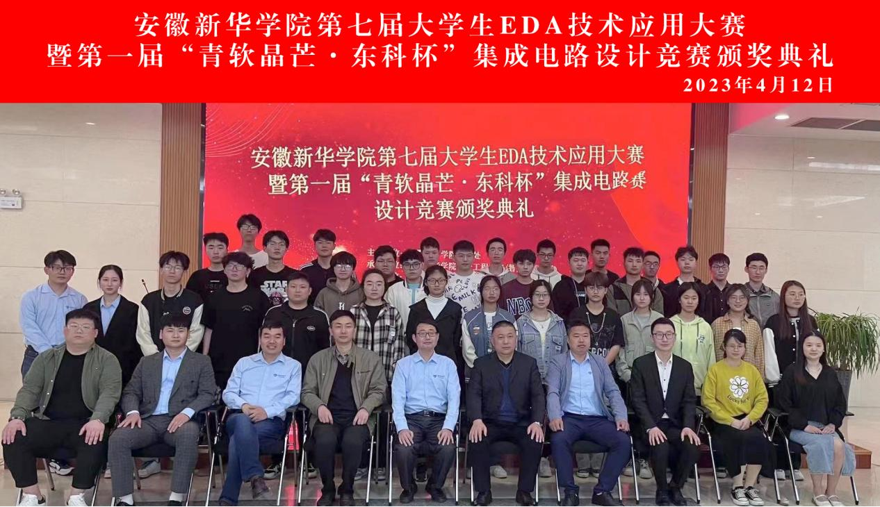 本网讯(通讯员:王亓剑)在贯彻落实国家集成电路发展战略重要部署,服务区域集成电路产业发展大局,提升集成电路产业人才培养质量,打造“产学研用”协同创新平台,提升beat365官网大学生创新实践能力、工程素质以及团队协作精神。beat365官网于近期举办“第七届大学生EDA技术应用大赛暨第一届‘青软晶芒˙东科杯’集成电路设计竞赛”,并于4月12日在合肥国家“芯火”双创平台完成颁奖活动。