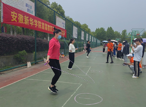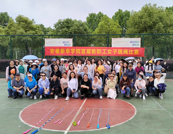 比赛历时两天,祥云体育场内气氛热烈,教师们的欢呼声、喝彩声、加油声、呐喊声交织在一起,在各个参赛成员的不懈努力和加油团的呐喊助威下,本次跳绳比赛取得圆满成功。最终,获得10人集体同步跳的前八名队伍依次是:院直二分工会、文化与传媒学院、城市建设学院、财会与金融学院、通识教育部、科技学院、电子工程学院/智能制造学院、药学院;获得10人“8”字跳前八名的队伍依次是:通识教育部、院直二分工会、大数据与人工智能学院、电子工程学院/智能制造学院、财会与金融学院、外国语学院、文化与传媒学院、药学院;获得单摇跳和一带一协同跳前八名的单位是:通识教育部、商学院、外国语学院、城建学院、文化与传媒学院、艺术学院、院直四分工会。