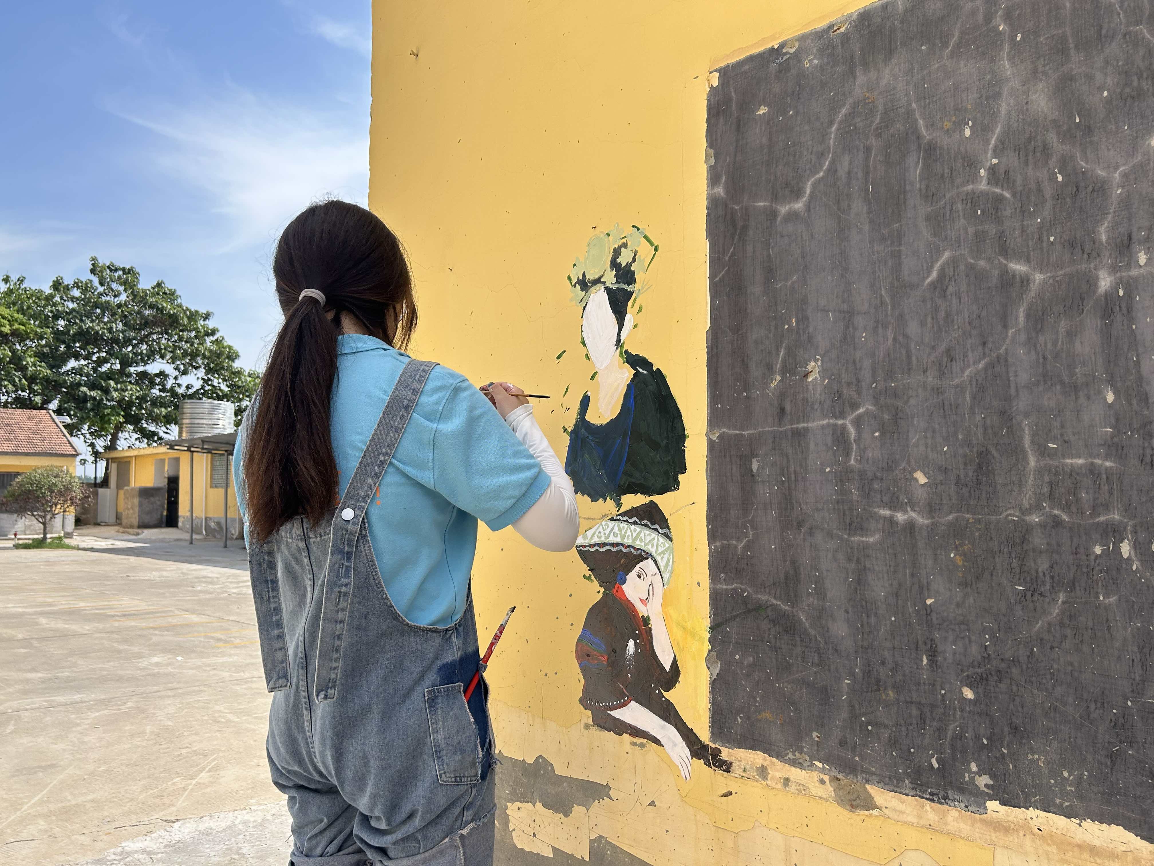 实践团成员丁佳丽对于近期的工作颇有感触,她说“在这次活动中,我主要负责村里部分墙面的墙绘,虽然烈日炎炎,但我们的热情依旧高涨,每天为完成当日的绘画任务积极努力着。队内的成员相互照顾,彼此关心,这是极其有意义的一次活动,将给我的人生回忆留下美好的金色的一段。”