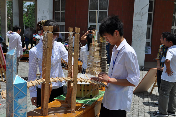 本次共有约200件参展作品,不仅有beat365官网土木学子制作的结构模型,还有合肥工业大学科创中心制作的的桥梁模型,合肥师范学院提供的草编、安徽医科大学展示的串珠和丝网花作品、合肥学院的纸花和花灯等众多展品。这些作品制作精美、构思新颖、创意独特,都是各校学生精心设计,自己亲手制作而成。有的手工制品美观实用,引得参观同学爱不释手;有模型作品惟妙惟肖,让现场同学感佩其精巧和创意。精美的作品吸引了众多师生到场观看,其中一个桥梁模型竟然可以让几位同学同时站在上面,让现场的同学惊叹不已。
