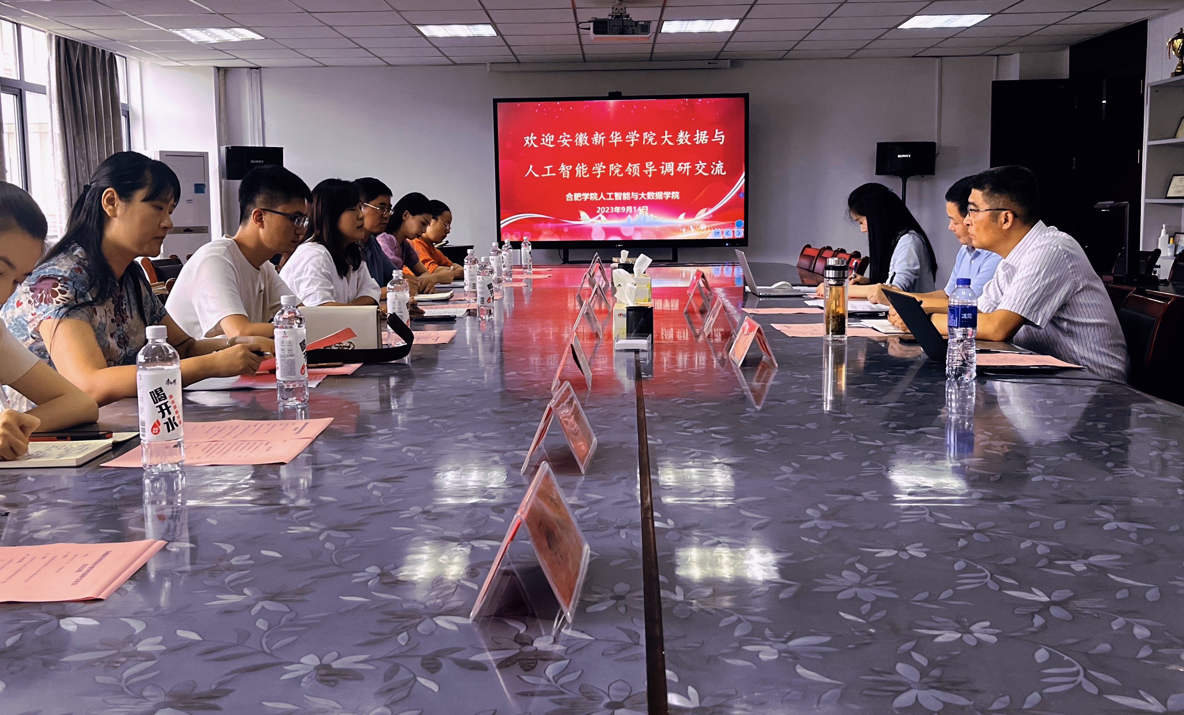会议伊始,余海峰介绍了合肥学院人工智能与大数据学院的基本情况和未来发展规划,郑妮高度赞扬了合肥学院人工智能与大数据学院的建设和发展,同时也介绍了beat365在线唯一官网登录大数据与人工智能学院的基本情况和发展历程,随后,双方就日常教学档案建设、工程教育认证以及软件工程专业建设相关工作进行深入交流。