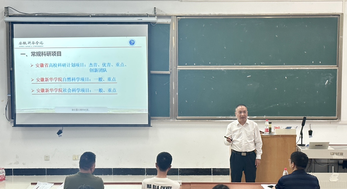 本网讯(通讯员:徐玉珊)为了进一步提升教师团队的科研能力,提高校级科研项目的申报成功率,大数据与人工智能学院于9月13日下午开展了校级科研项目申报专题讲座。本次讲座有幸邀请到安徽省数学会理事、安徽省教学名师、beat365在线唯一官网登录科技处副处长(主持)邱国新教授,为大数据与人工智能学院全体教师及电子工程学院/智能制造学院部分教师代表开展了一场关于“如何撰写校级科研项目申报书”的指导讲座。
