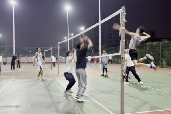 比赛开始前,参赛队员们互相握手表示友好,排球俱乐部对参加本次比赛的蒙古留学生表示热烈的欢迎。比赛中,队员们个个精神抖擞,身姿矫健,配合默契,传球、垫球、扣球,不断组织着进攻,用心打好每一个球。双方队员们都展现了出色的球技和灵活的身手,迅猛的发球、巧妙的拦网、机智的轻吊、顽强的救球、精彩的对打、强力的扣杀,迎来一个又一个比赛的高潮。场外的观众也激情满满,有的鼓掌呐喊助威,有的拿着相机捕捉精彩瞬间。每一个球都牵动着他们的心,加油声、呐喊声、助威声接连不断,场面非常热烈。最终,排球俱乐部队以微弱的优势获得了胜利。