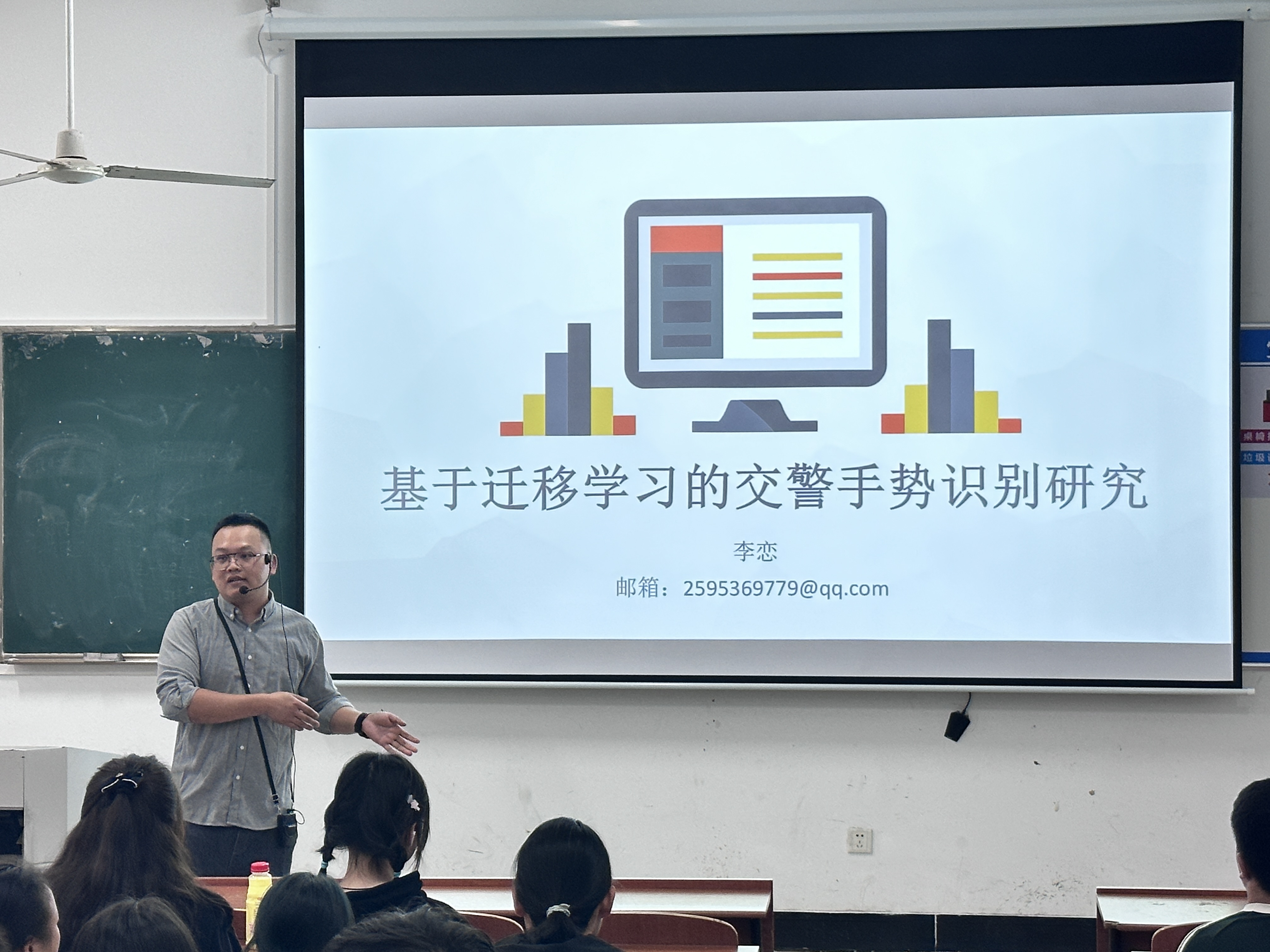 本网讯(通讯员:石文玉)10月25日中午,大数据与人工智能学院举办了题为“基于迁移学习的交警手势识别研究”和“智慧城市中的视频监控系统建设及案例分享”专题讲座,由大数据与人工智能学院副教授李恋和敖希琴主讲,报告基于两位在读博士的在研课题,大数据与人工智能学院21级和23级软件工程专业学生和部分教师参加了本次报告。