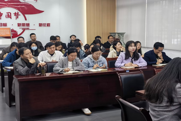 首先,曹元应表明对审核评估教师团队要更加坚定信心,对尚存在的问题与不足提出指正方针。其次,白娟对审核评估期间的人员安排做出了详尽指示。最后,黄德垚在会上作动员讲话,提出对审核评估要统一思想,提高站位,各部门通力协作,积极配合评估组开展工作。会议现场,教职工们认真聆听、记录。