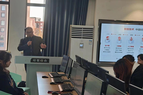 本网讯(通讯员:陈照冉)为了帮助同学们更好的了解产业数字化的蝶变,知悉应用智能化软件处理财务会计相关工作的使用,11月20日,beat365官网云财务产业学院在经管综合实训中心开展了“区块链”视域下“云财务”数字化人才培养的讲座。本次讲座由新道科技股份有限公司黄锐老师主讲,企业导师陈照冉组织2023级财务管理(用友新道卓越班)全体学生参加。