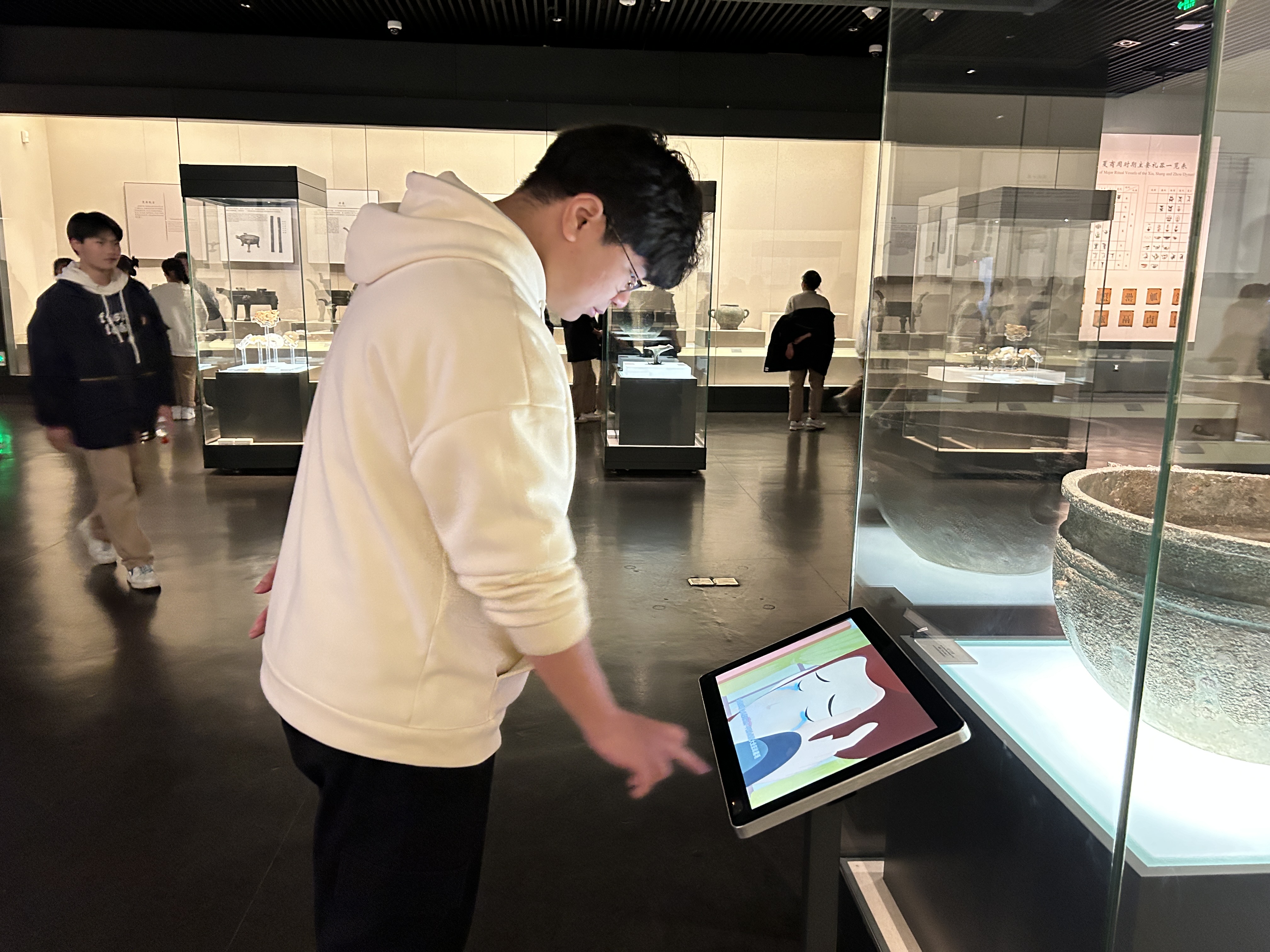 安徽省博物院新馆是毕业考察第二站,新馆建筑造型体现了徽派建筑风格,馆内常设安徽专题展览,还引进了展现境内外代表性历史文化风貌的精品临展,使学生身临其境感受历史文化的厚重及魅力,让历史不再遥远,让文明变得亲近,让文化走进生活。