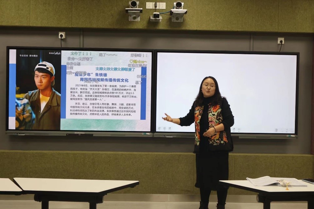 比赛分为说课与教学片段演示两部分进行。参赛教师按照抽签顺序,结合本课程大纲和教学设计思路进行了教学创新汇报,他们以饱满的精神状态、娴熟的专业知识和高度的教学热情进行了课程展示。孙晨忱老师以教学目标为导向,根据教学对象和所教内容特点采取不同的创新教学方法,分享了《习近平新时代中国特色社会主义思想概论》的创新课程设计。李静老师以生动的情境模拟法导入课程,以环环相扣、层层深入的方式展开教学,针对《思想道德与法治》课程展示了自己的创新思路。赵东云老师则以《中国近现代史纲要》中的课程内容为主题分享教学创新方案,通过对多媒体资源的灵活应用,将线上红色文化展馆搬进教室,带领学生们在课堂上体验“行走的思政课”。其他参赛老师也是各显风采,从不同角度进行了精彩的教学展示,充分展现了马克思主义学院教师的业务水平和专业技能。