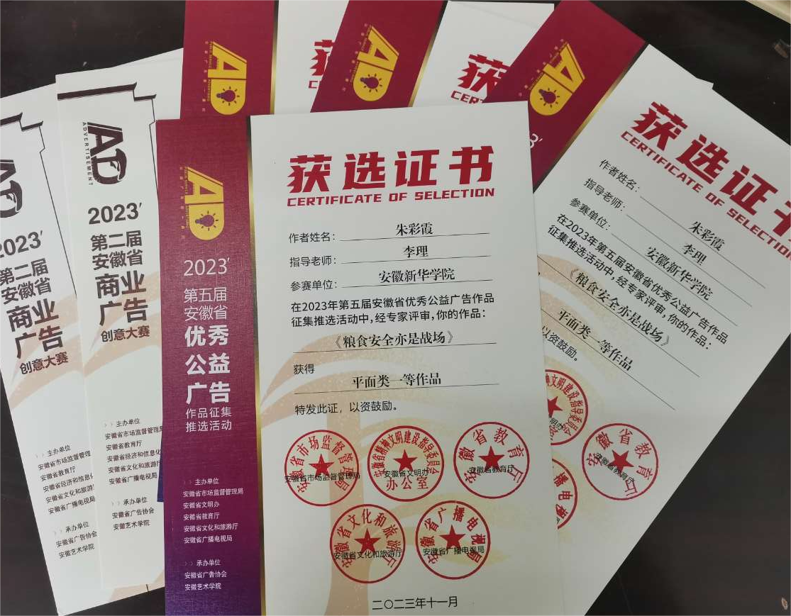beat365官网师生在第五届安徽省优秀公益广告大赛和第二届安徽省商业广告创意大赛中获奖