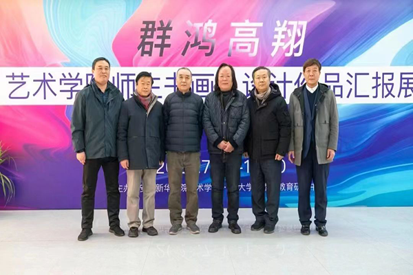 观看展览结束时,大家集体合影留念。何海波主任表示今后将继续关注艺术学院精神文明创建的成果,期待学院更加紧密地将文明创建及主题教育、教育教学相结合。在场的艺术学院班子成员和教师表示将会积极动员师生参与文明创建活动,以优异的育人成果和思想性强、艺术水准高的作品,为安徽经济社会文化事业高质量发展做出新的更大贡献。
