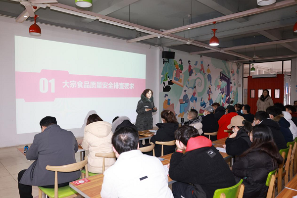 随后,孙道芳围绕人员、环境卫生、原辅料、设施设备、餐饮具消毒、全面自查六大方面对各服务单位开学前的准备工作进行讲解和考核。同时,就大宗食品质量安全排查工作进行要求和培训。