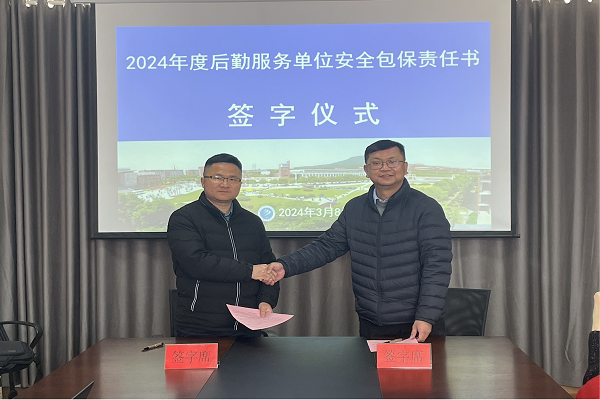 贺行佳代表学校与服务单位签订《2024年度后勤服务单位安全包保责任书》。